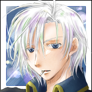 | 髪 | 銀色■/淡緑■/薄紫■ 癖のある長めの短髪、アホ毛 |