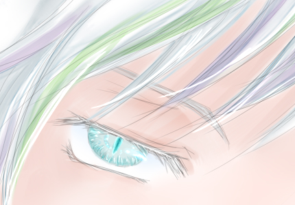 瞳 | 曇色■ タレ眼・積雲の影のような青灰色 竜眼は銀の虹彩と氷色の瞳 |